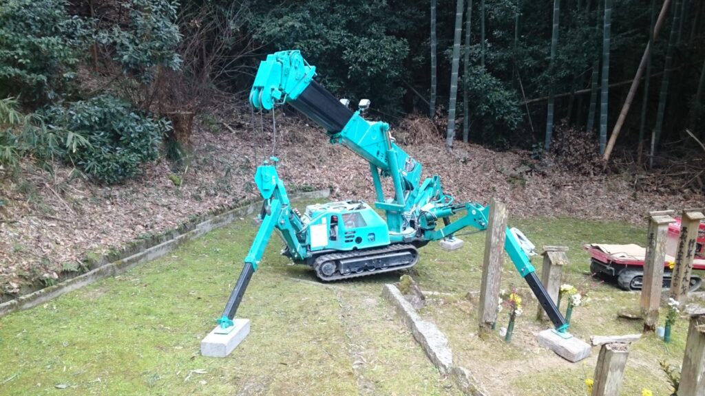 キャタピラの付いた運搬車やカニクレーンと呼ばれる移動式のクレーンも基本使わない。