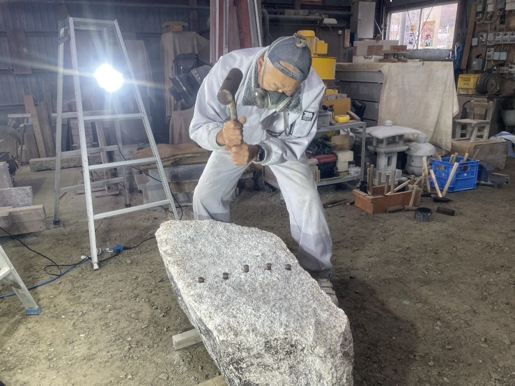 「石材加工のビデオ撮り」