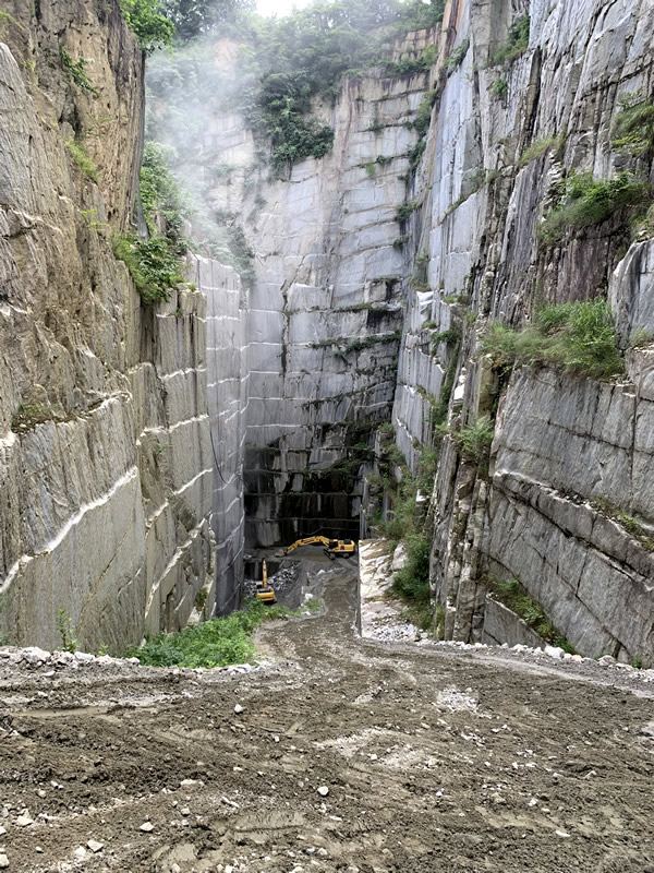 そこの山は、昔は下に向かって掘って石を取ると言う石の取り方。