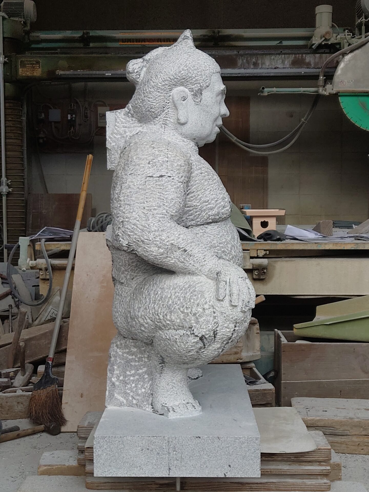 墓石も力士像も仕上がらない。